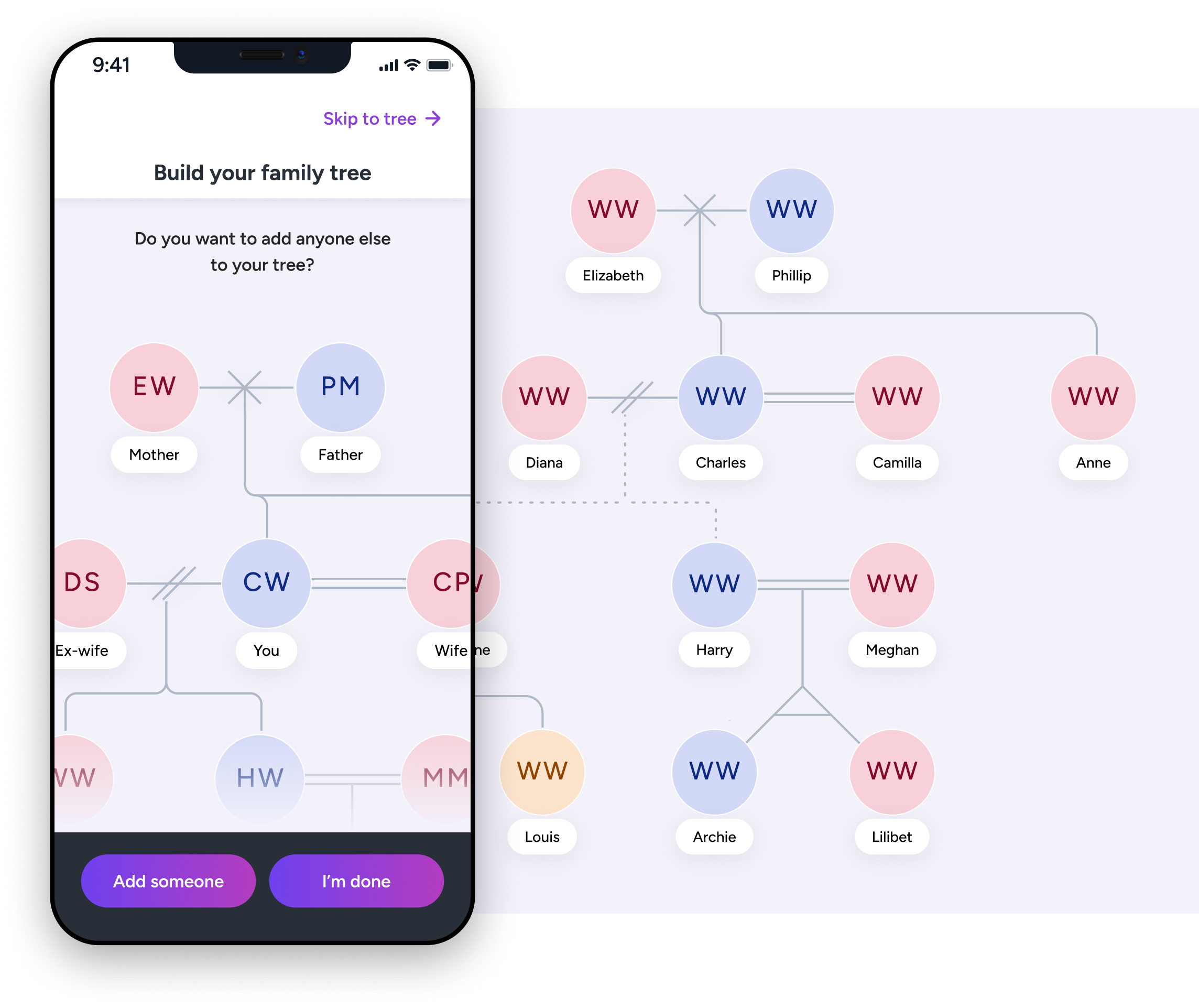 Refining the user flow to reduce friction and help users go from app download to building a family tree quickly.