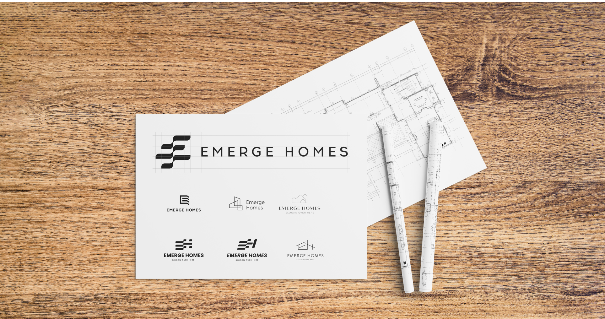 The Emerge Homes brand was crafted by Pepperplane, weaving together modern geometric forms with elements and imagery of housing. This process was grounded in research, drawing from contemporary building plans and architectural features. The objective was to encapsulate the essence of Emerge Homes in a unique symbol that resonated with the brand name, consciously bypassing the typical house logo depiction.