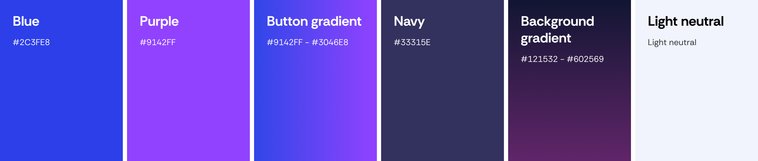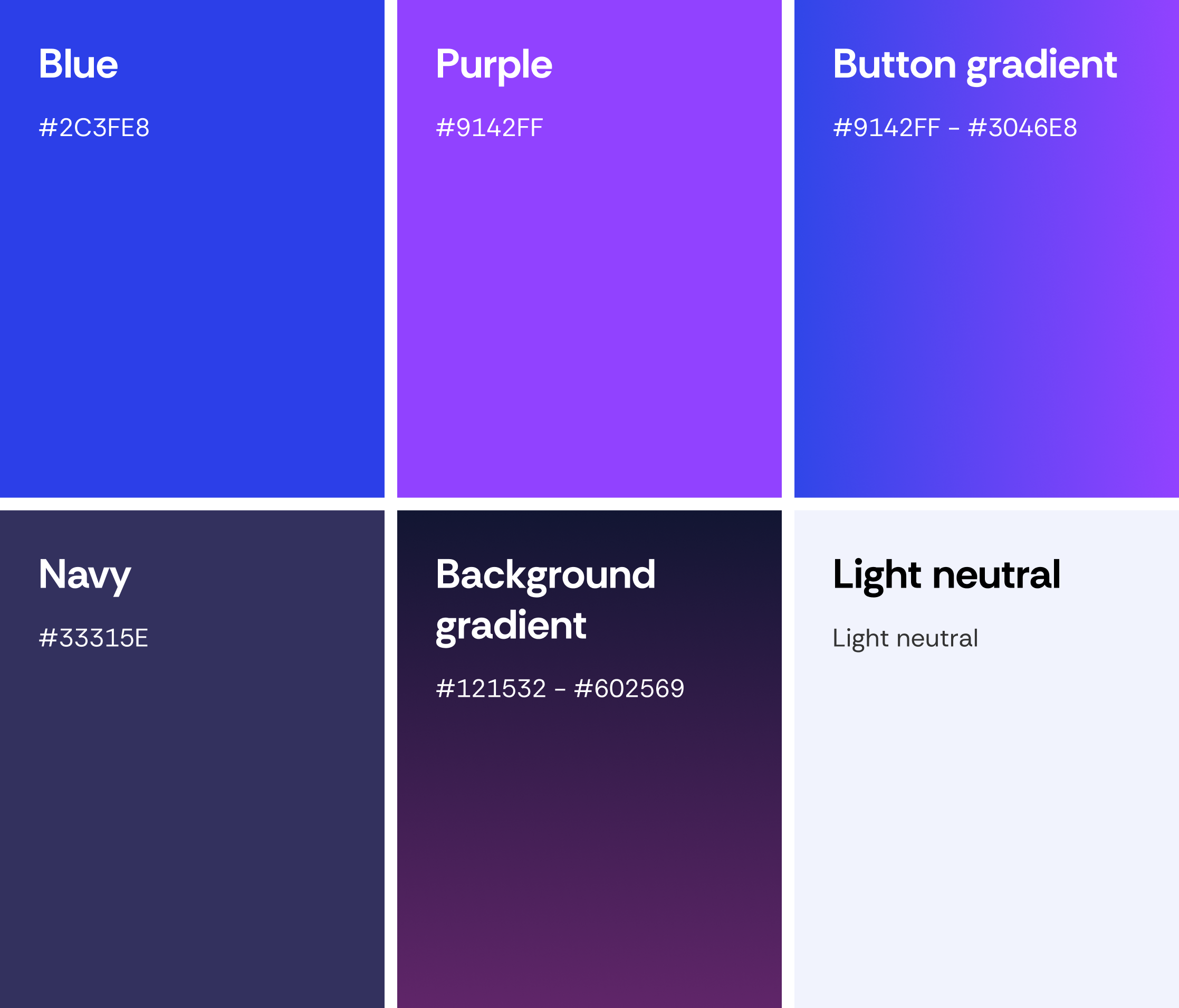 This vibrant palette blends electric blue and rich purple to convey innovation, trust, and engagement. Deep navy and twilight gradients add depth and focus, while the soft neutral ensures clarity. It reflects a modern, approachable, and friendly experience.