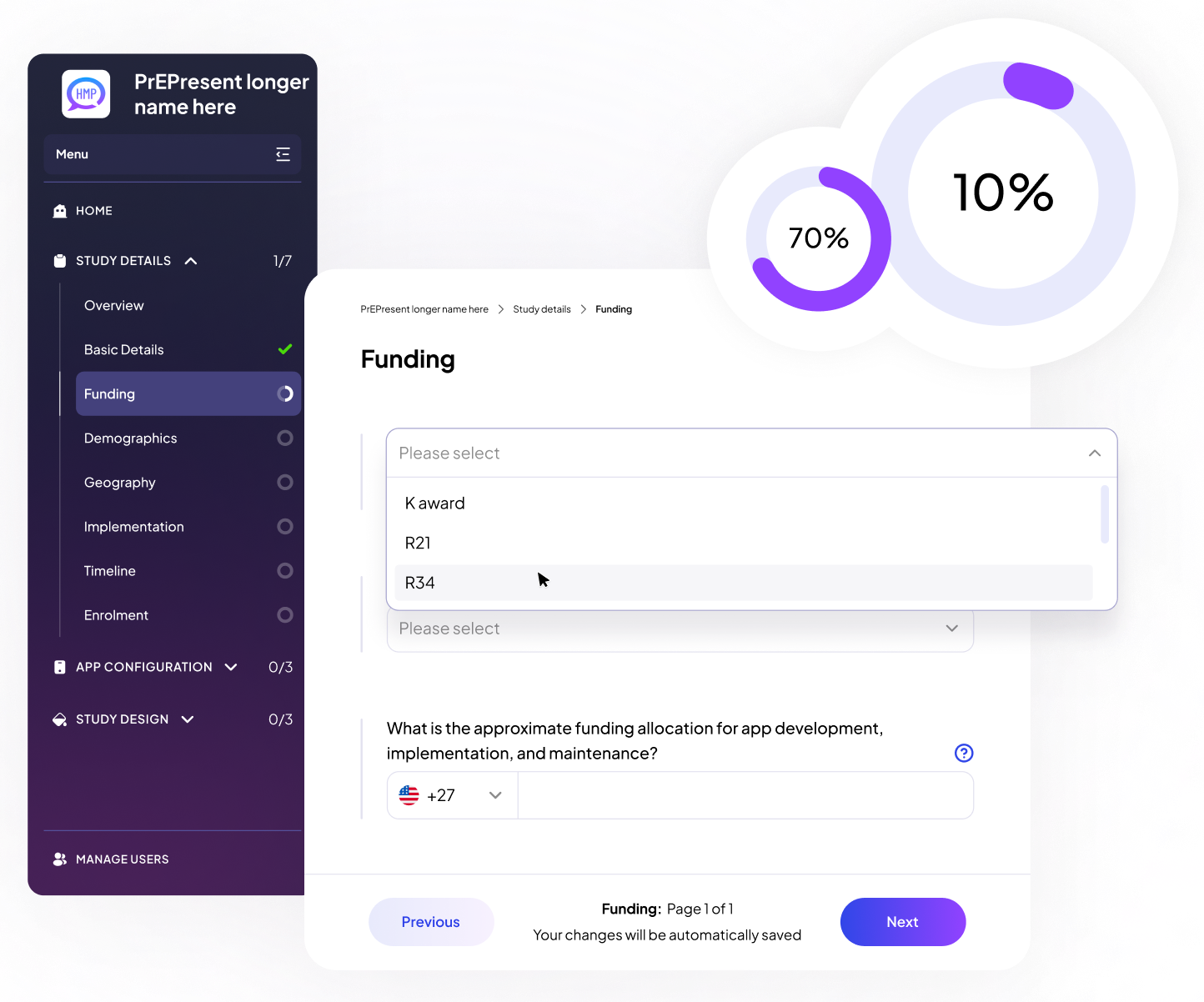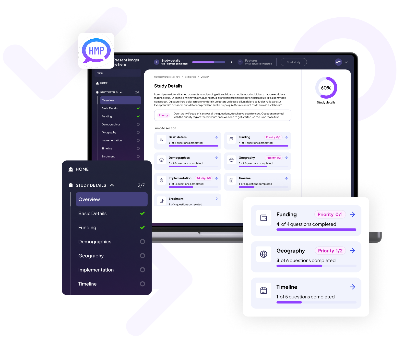 HMP leads the US market in digital health interventions, helping research teams turn grant-funded studies into custom apps powered by an admin portal, giving remote access to global participants. But onboarding new interventions was slow and manual; months of meetings, documentation, and back-and-forth made the process rigid, delayed launches, and prevented scale. The goal was to digitise the workflow, cut repetition, reduce lead time, and enable HMP to run more research projects in parallel.